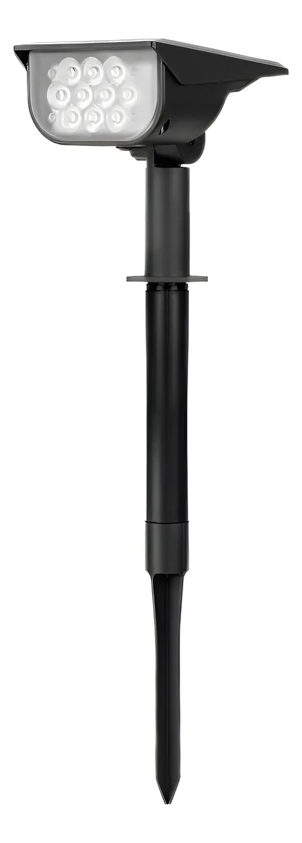 Estaca Solar LED 6W con jabalina para jardín, ideal para iluminar espacios exteriores de manera sostenible y práctica. Funciona con energía solar, ofreciendo luz neutra y encendido automático al anochecer. Su diseño en color negro y materiales resistentes la convierten en una opción duradera para cualquier ambiente exterior.