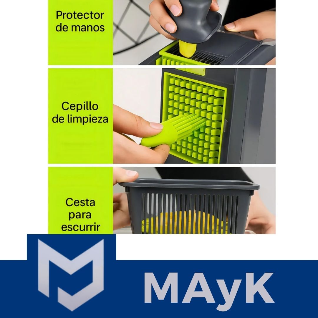 🔪 7 cuchillas intercambiables de acero inoxidable: ideales para cortes finos, gruesos, ondulados, bastones y cubos.
